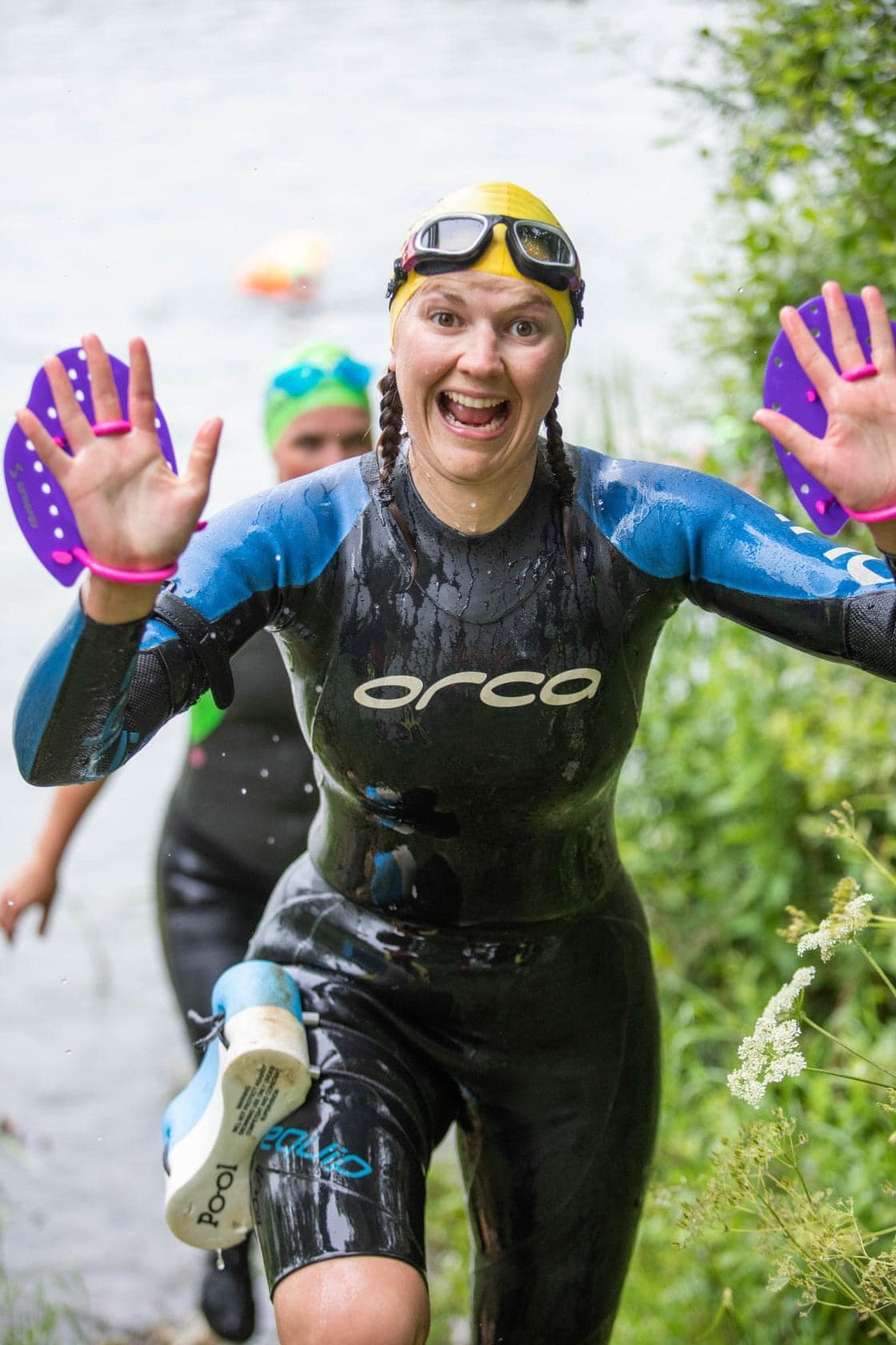 You will need to wear your running shoes/trainers throughout the event and you will need to wear a wetsuit, tri-suit or swimming gear. You can use additional equipment such as paddles and pull buoys but whatever you start with you have to carry and finish with.